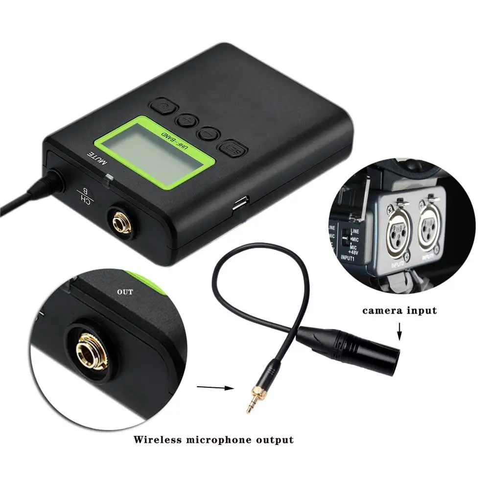 2.La interfaz de salida de audio del receptor de micrófono inalámbrico está conectada a la interfaz de entrada de audio XLR de la cámara.