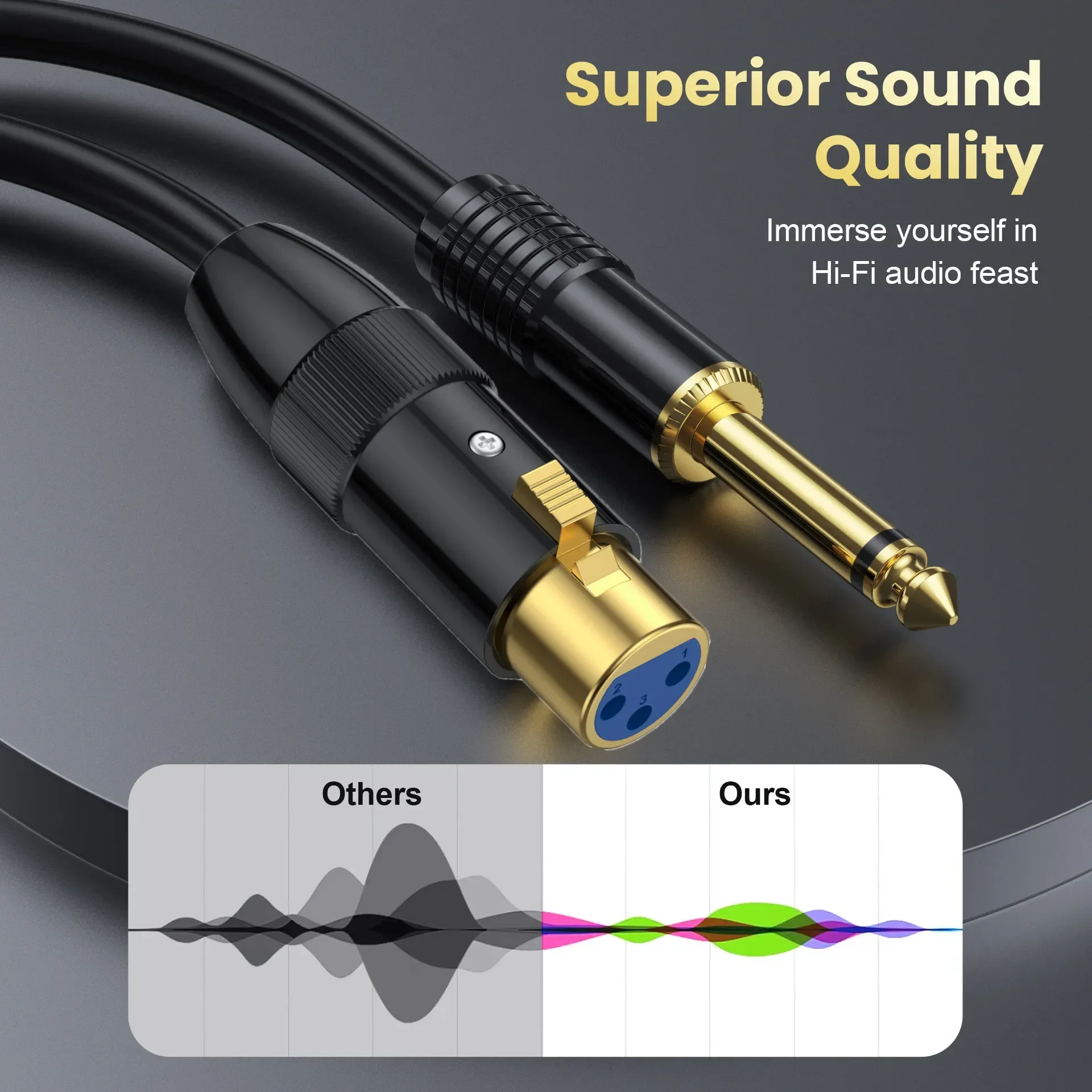 Conector de micrófono XLR de la serie Profesional con enchufe estéreo de 6,35mm, el cobre libre de oxígeno proporciona la máxima conductividad y Durabilidad; La carcasa de aleación de zinc garantiza una pérdida de señal mínima, y el conector chapado en oro de 24K es adecuado para todos los dispositivos de 6,35mm y XLR, lo que facilita enchufar y desenchufar.