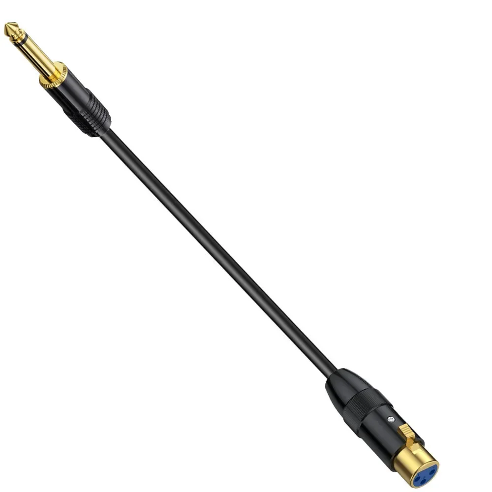 Carcasa metálica con núcleo de cobre chapado en oro XLR hembra a mensajero de doble tono TRS de 6,35mm para uso en amplificadores mezcladores de micrófono con cable de audio de micrófono interno;