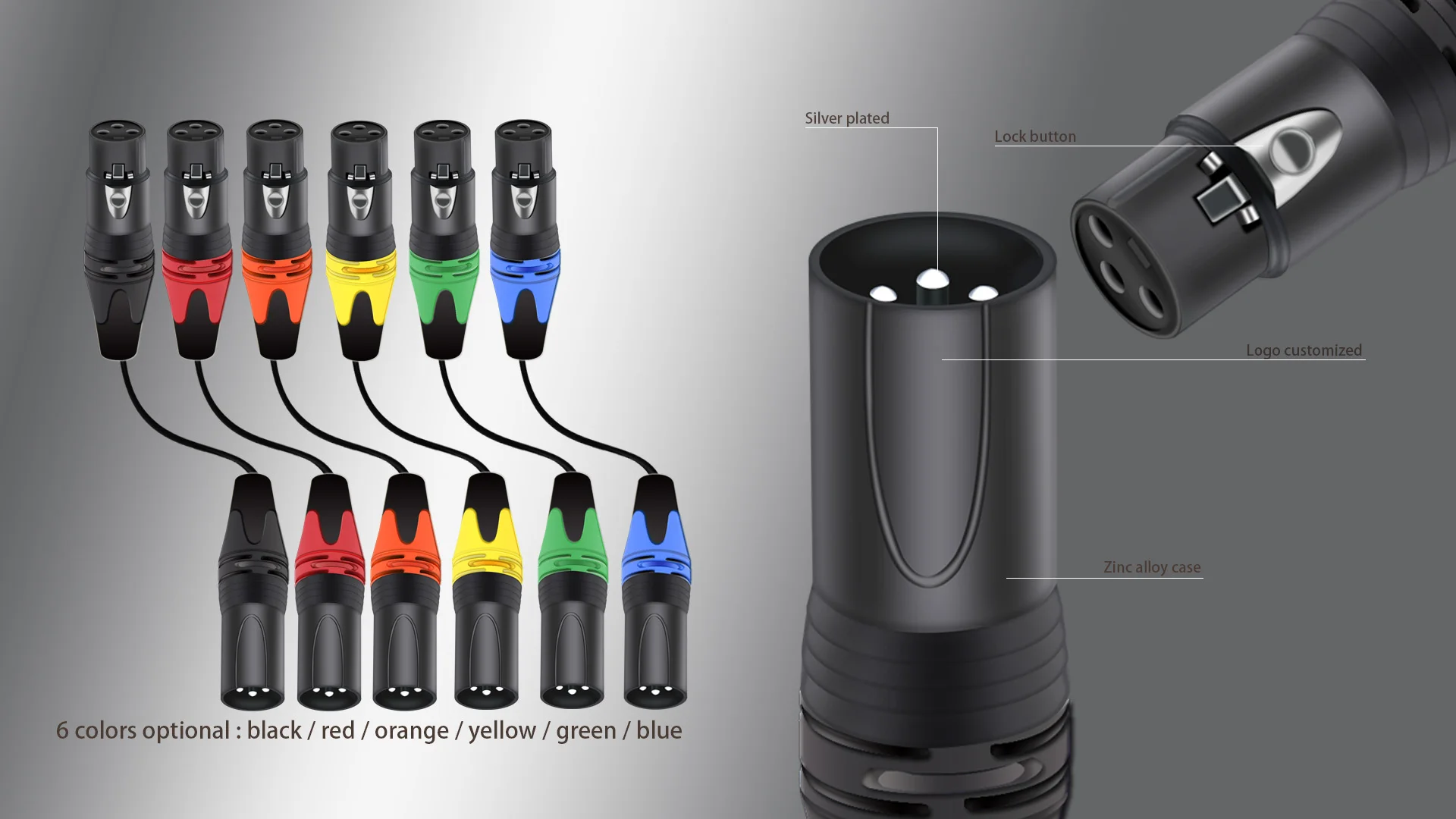 Cable de micrófono XLR macho a hembra de 3 pines multicolor, cobre sin oxígeno (OFC) para equipos de audio y sonido