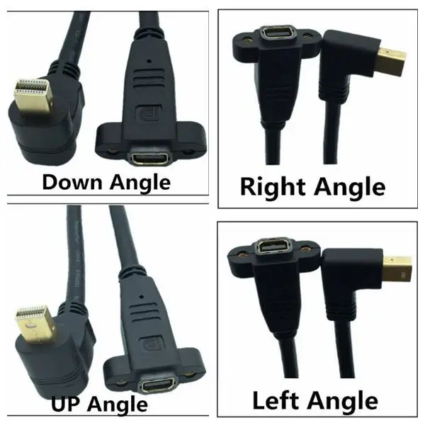 Comprar Cable Mini DisplayPort macho a hembra, Cable de montaje en Panel de tornillo extendido, derecho, Izquierdo, arriba y abajo, 90 grados, ángulo Mini DP a Mini DP 4K
