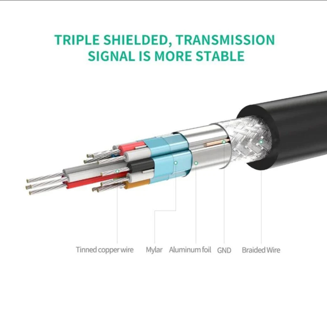 2) Tenemos varios proveedores y la moldura del cable puede variar de vez en cuando; sin embargo, todos los cables son de conductor de cobre con triple blindaje. Y puede comprarlos con confianza.