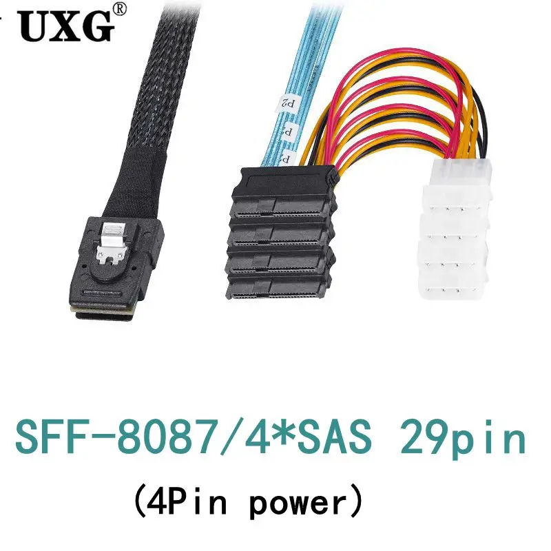 Comprar Cable Mini SAS de 1m SFF 8087 a 4 SFF -8482 Cable de datos de disco duro de alimentación grande de 4 pines y 15 pines SFF-8087 Host a 4 SAS Cable SFF8482 de 29 pines
