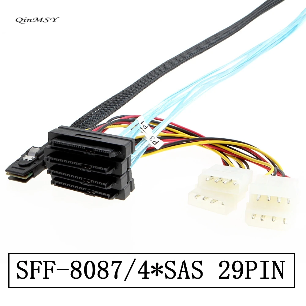 Comprar Cable Mini SAS SFF 8087 a 4 SFF -8482 Cable de datos de disco duro de alimentación grande de 4 pines y 15 pines SFF-8087 Host a 4 SAS Cable SFF8482 de 29 pines