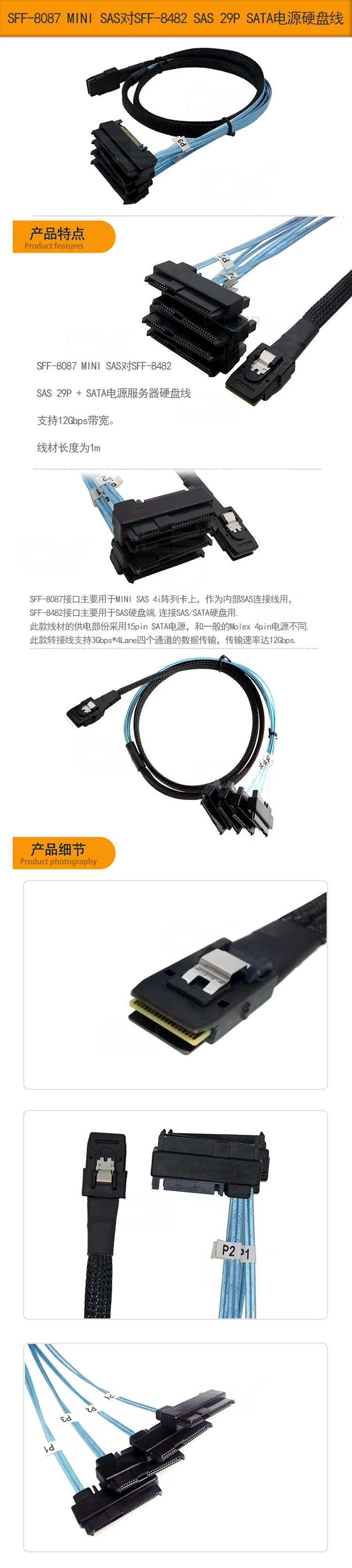 Comprar Cable Mini SAS SFF 8087 a SFF-8482 con alimentación SATA/Molex, SFF-8087 Host a 4 SAS 29Pin SFF8482, objetivo de disco duro, 1m, 3 pies