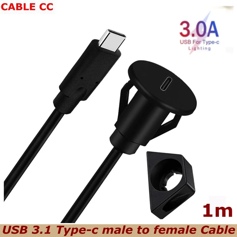 Comprar Cable de montaje empotrado para coche tipo C 3,1, 1m, USB C, montaje en Panel, Cable de extensión macho a hembra para salpicadero de coche, camión, barco y motocicleta