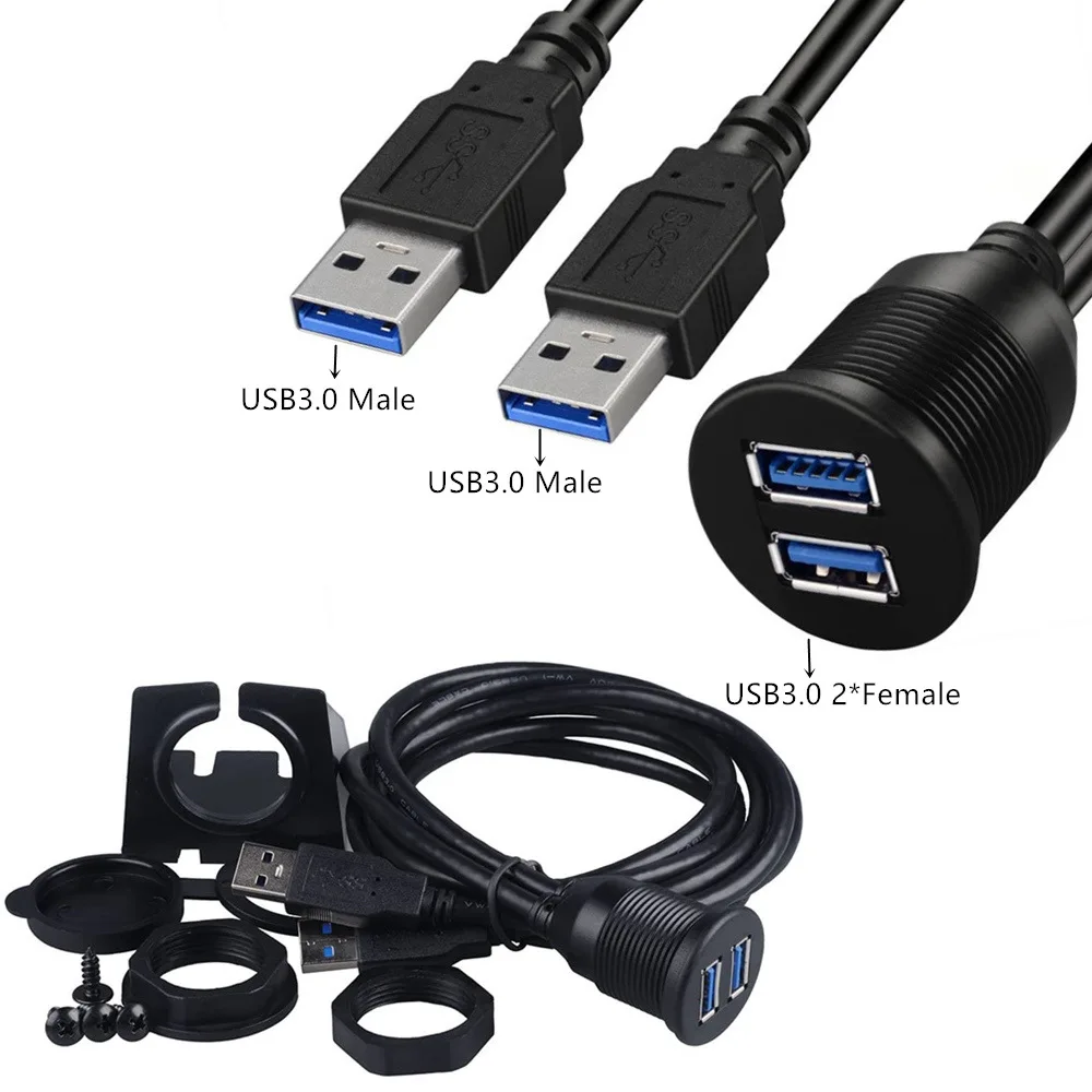 Comprar Cable de montaje empotrado en panel USB, soporte USB de extensión USB dual 3,0, montaje en tablero, montaje empotrado, cable de montaje en panel 1m 2m