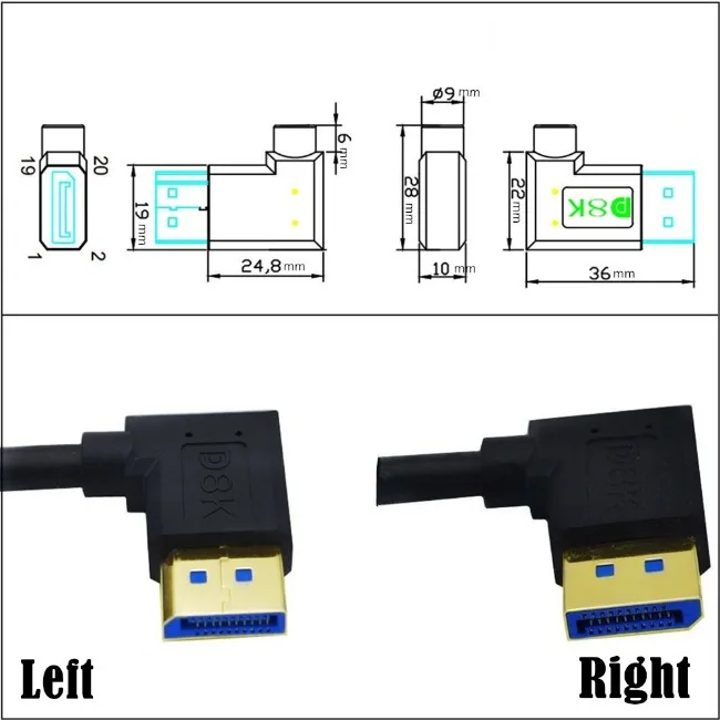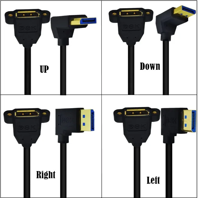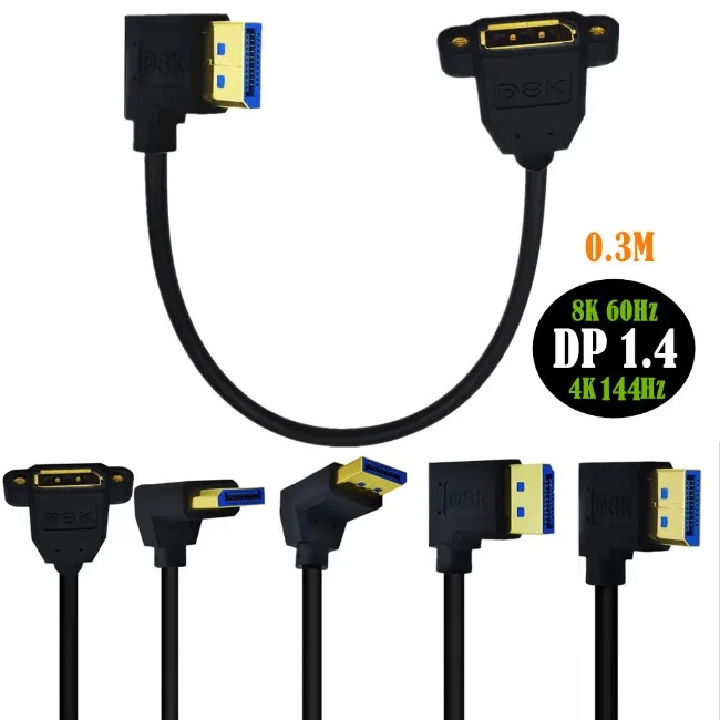 Comprar Cable de montaje en Panel de extensión DP, DisplayPort a DisplayPort macho a hembra, 1 pie, derecha, izquierda, arriba, abajo, ángulo de 1,4 V, 8K @ 60Hz, 30cm