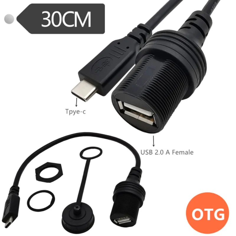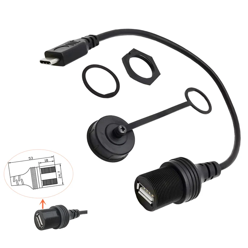 Comprar Cable de montaje de panel integrado auxiliar impermeable OTG USB-C hembra tipo C a USB 2,0 para salpicadero de coche, barco y motocicleta