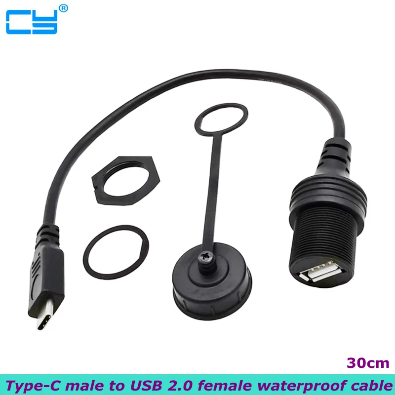 Waterproof cable type-c to usb2.0 car ship yacht dashboard mobile phone tablet mouse keyboard OTG data cable 0.3 m