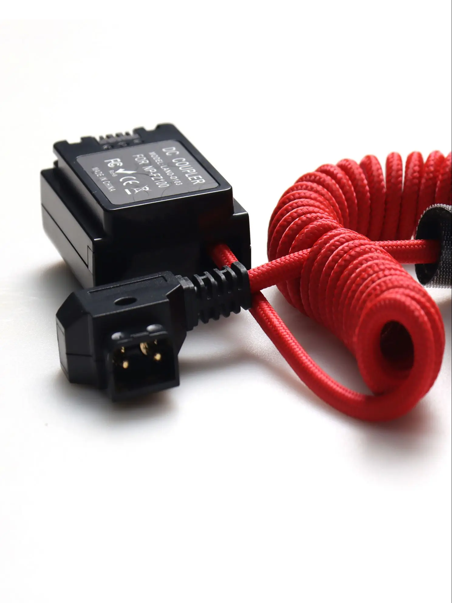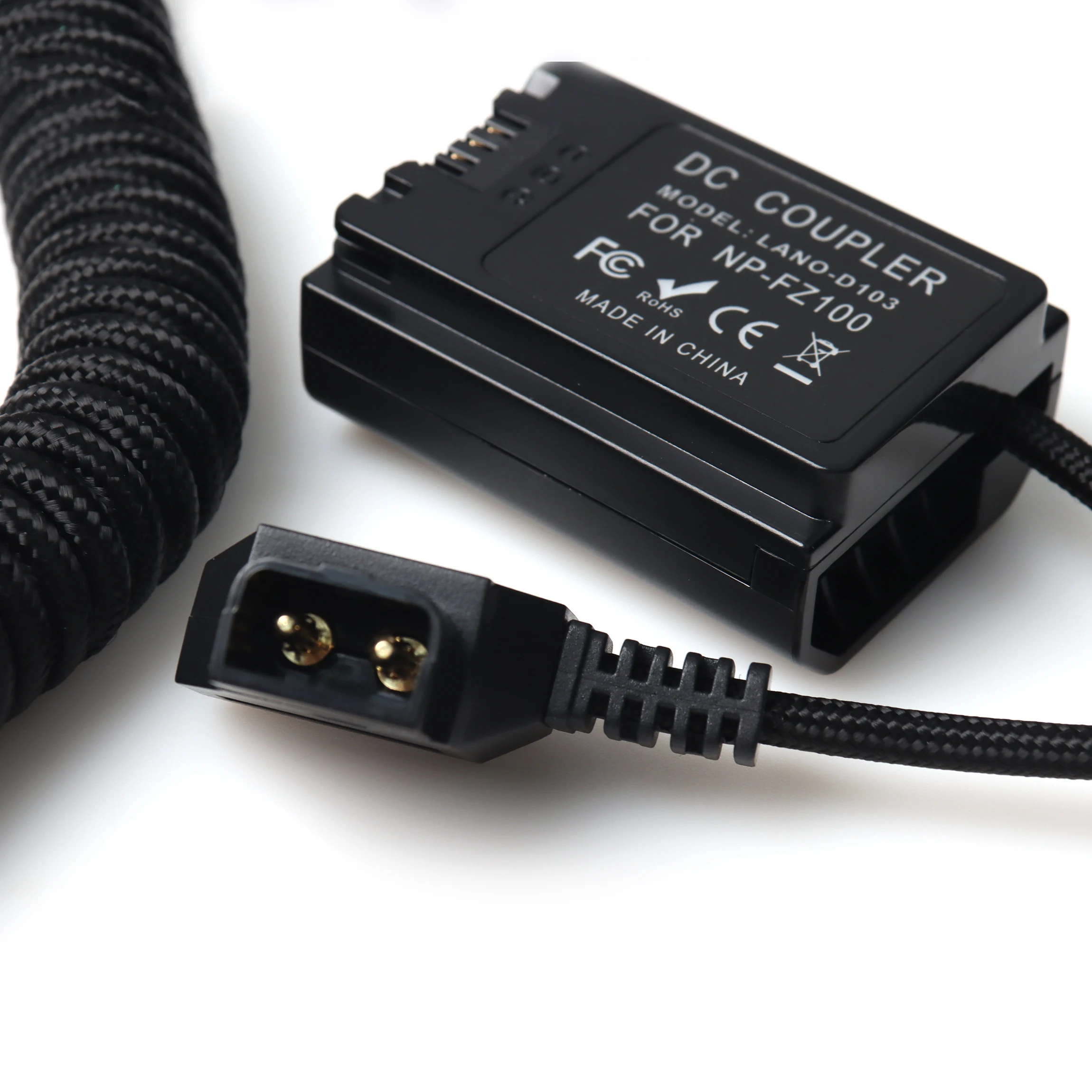 Cable de nailon en espiral con batería simulada D-Tap macho a CC para NP-FZ100 o SONY NP-F550