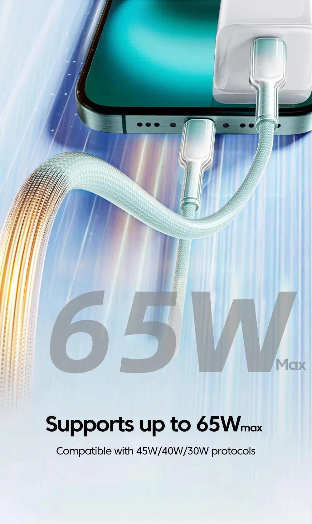 Deja de funcionar cuando alcanza los 13W+. Indicación clara de que no es un cable real de 65W.