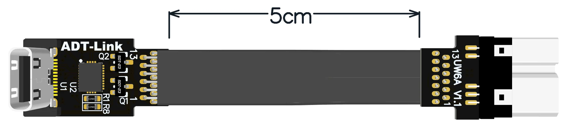 La longitud del cable en nuestra tienda se refiere a la parte del cable visible, excluyendo la PCB y las longitudes del conector, consulte la dimensión de 5 cm en la siguiente figura.