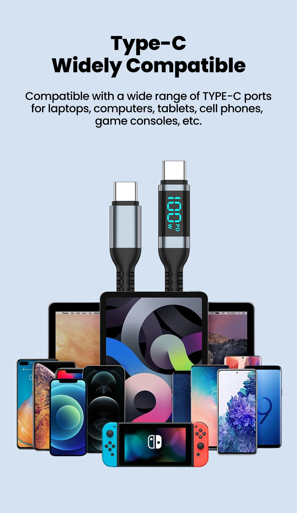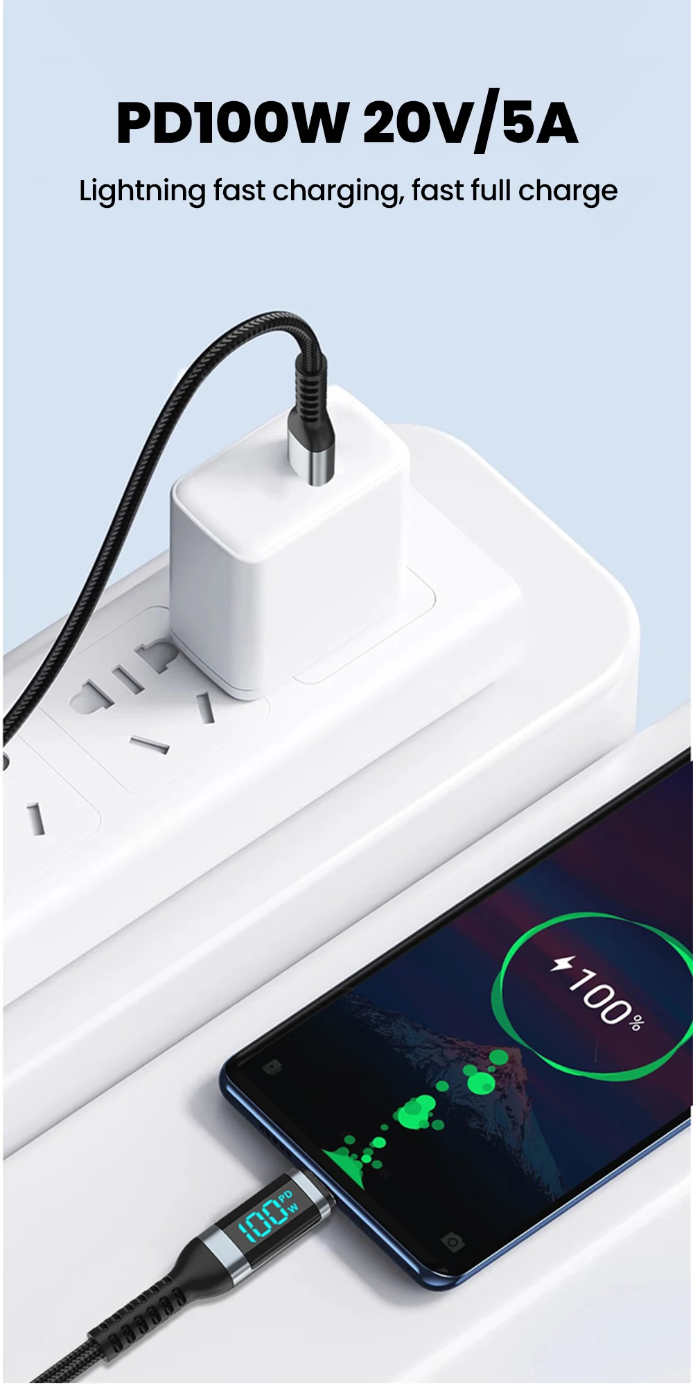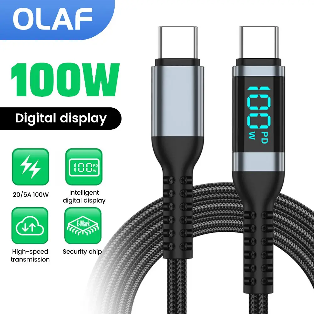 Comprar Cable de pantalla Digital de carga súper de 100W tipo C a tipo C para Iphone 15 16 Samsung s24 s23 Huawei Xiaomi 0,5 m-2m Cable de datos USB C