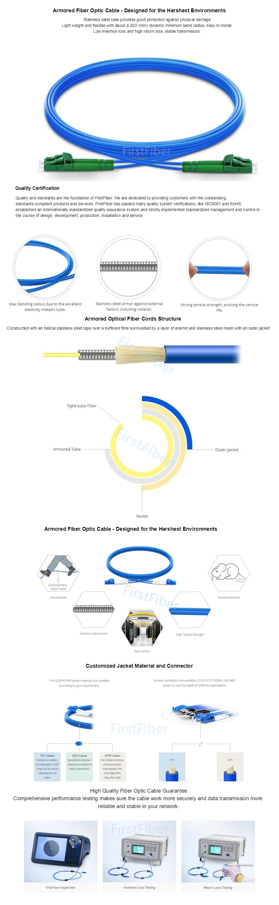 Comprar Cable de parche blindado LC SC FC ST APC de 10m, Cable de parche de PVC blindado doble de 2 núcleos, modo único
