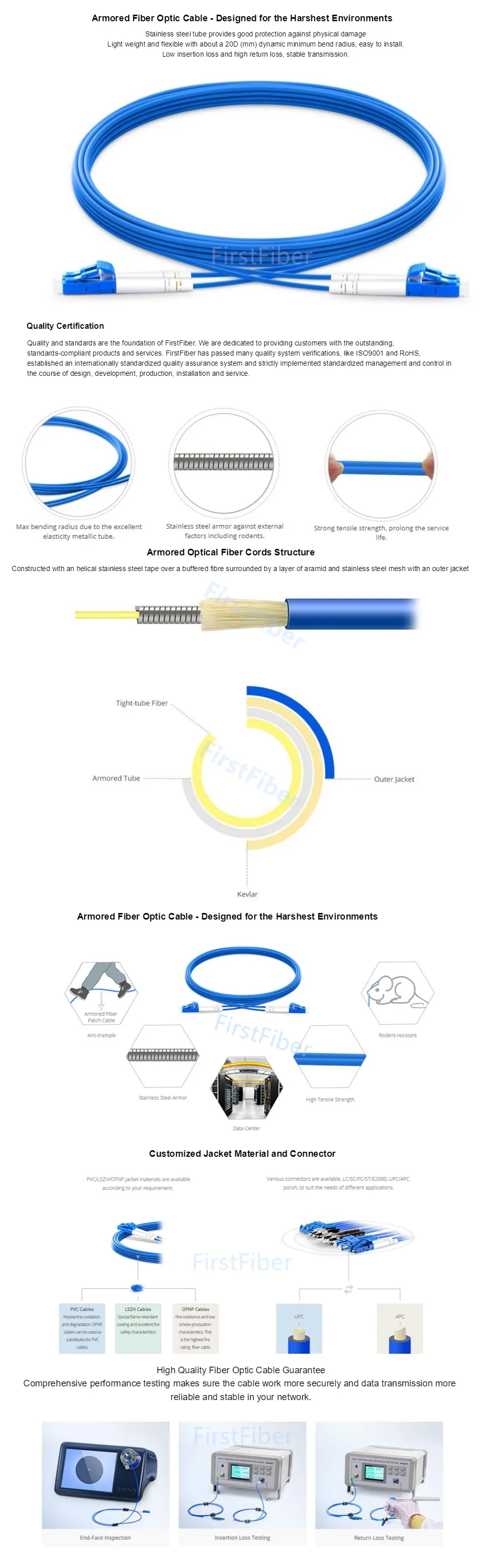 Comprar Cable de parche blindado LC UPC, 1m LC optic jump Duplex, 2 núcleos, fibra de modo único, Cable de parche de PVC blindado