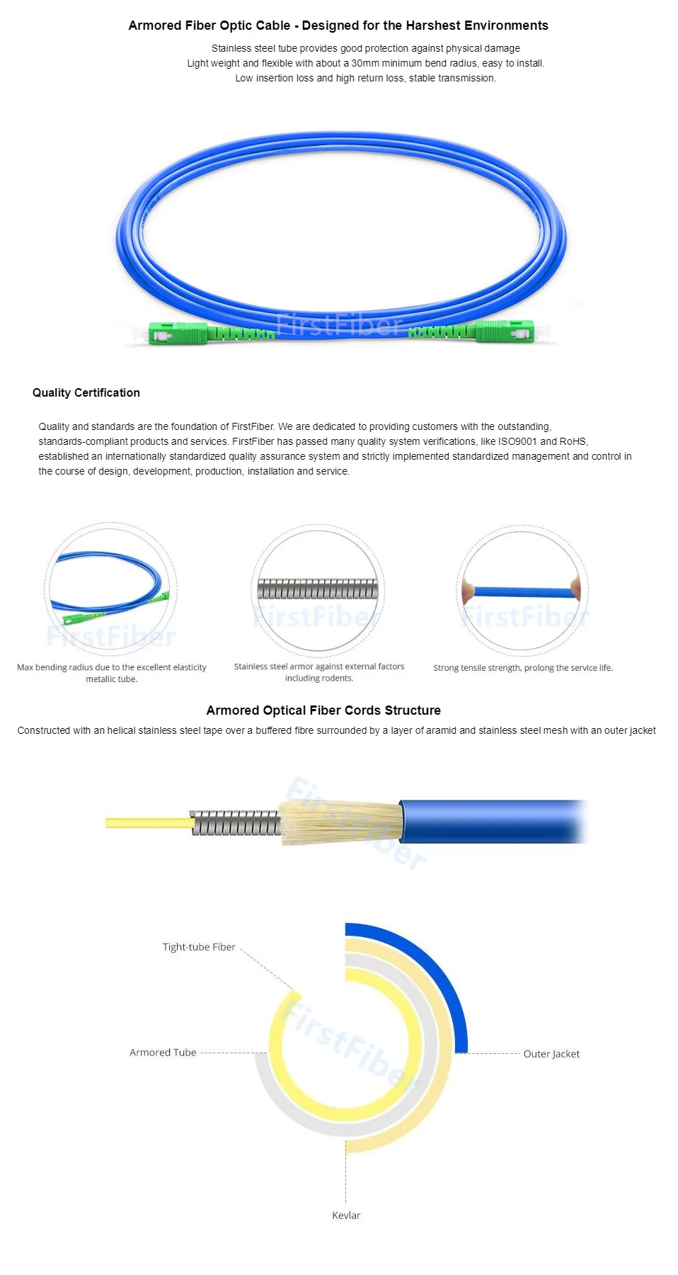 Comprar Cable de parche blindado SC APC a SC UPC, Cable de parche de fibra azul SC, puente óptico Simplex, PVC de modo único, 1m