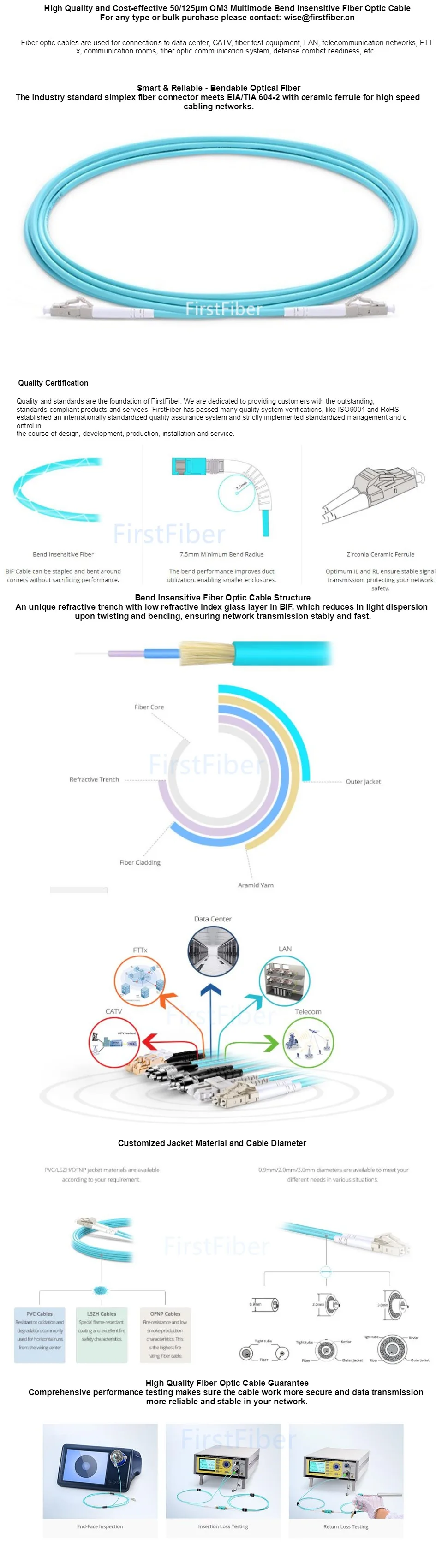 Comprar Cable de parche de fibra LC SC FC ST UPC OM3, puente simple, 1 núcleo, multimodo, 2,0mm