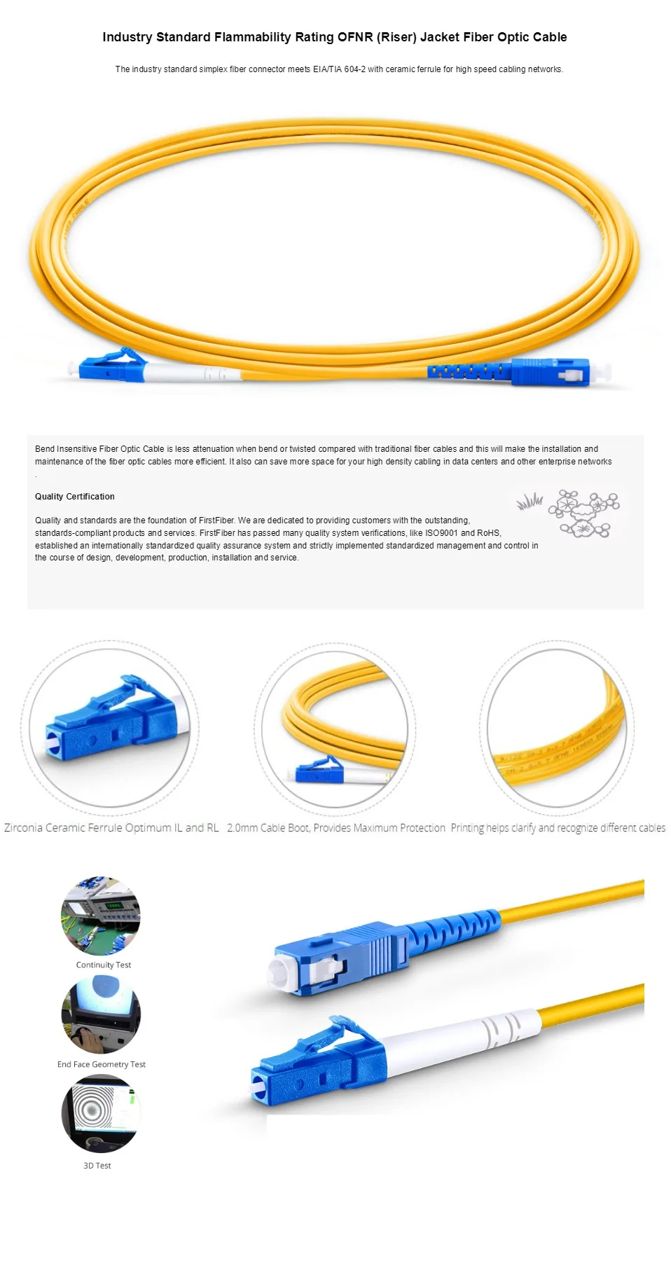 Comprar Cable de parche de fibra LC UPC a SC UPC, puente de fibra, Cable de parche óptico de fibra Simplex 2,0mm SM Bend, sensible