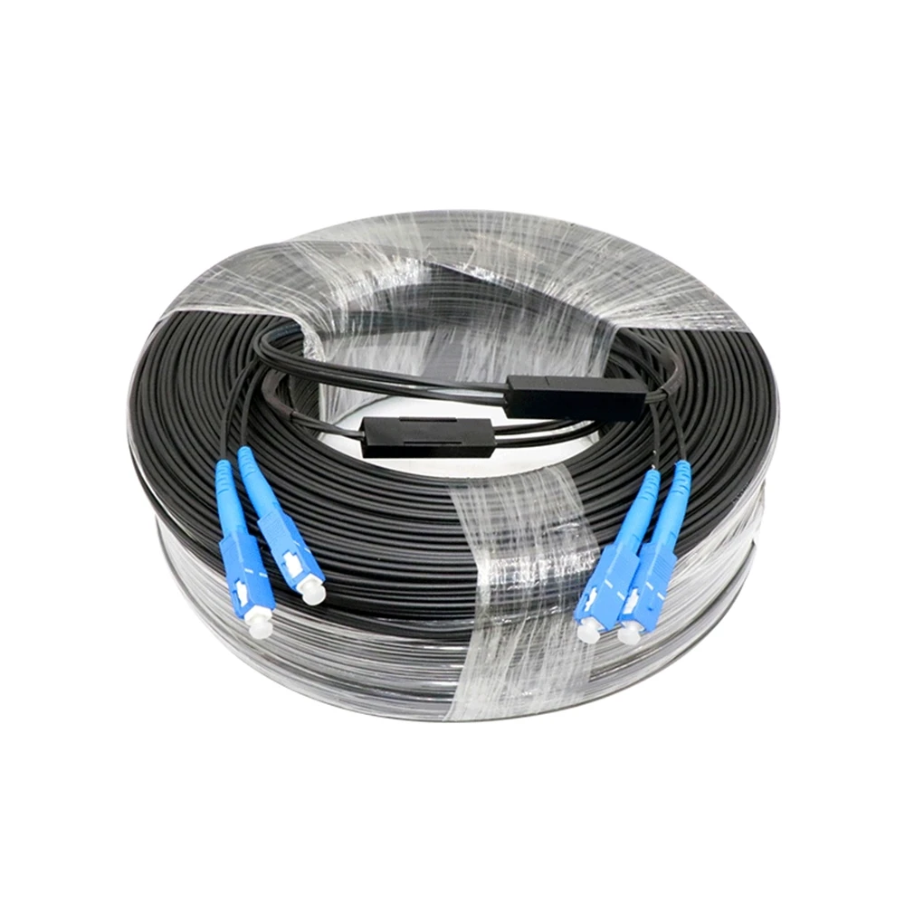 Comprar Cable de parche óptico de caída al aire libre, 400M SC/UPC, 2 núcleos, modo único FTTH, puente de fibra óptica G652D, 3 cables de plomo de acero 400mtr