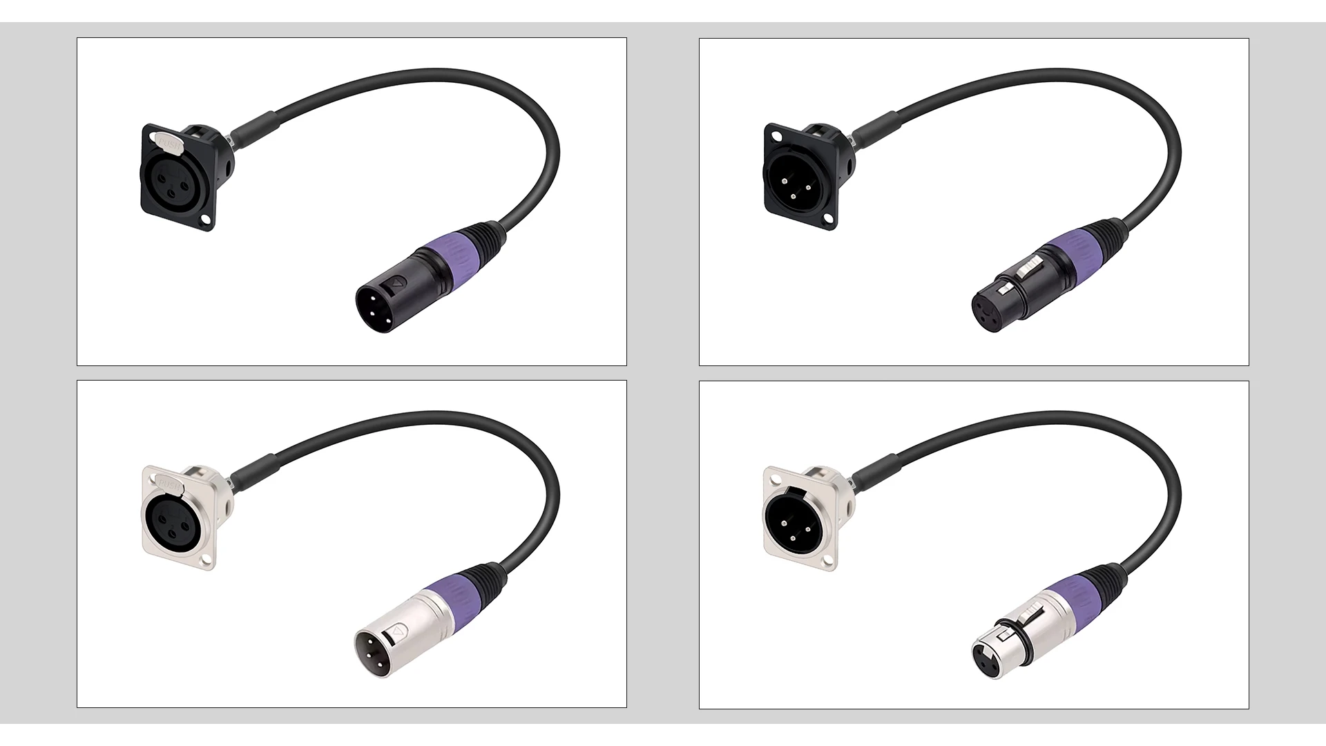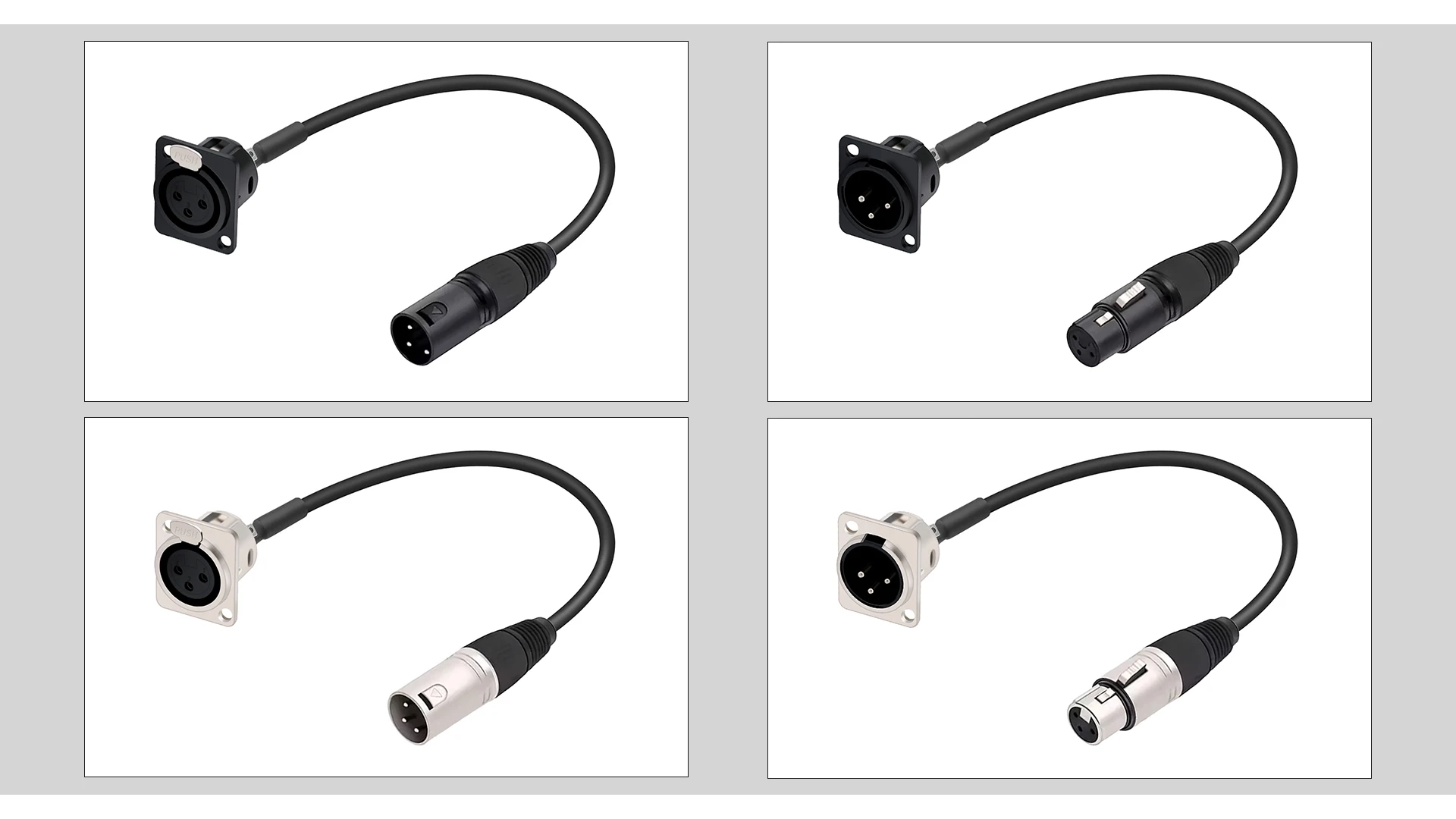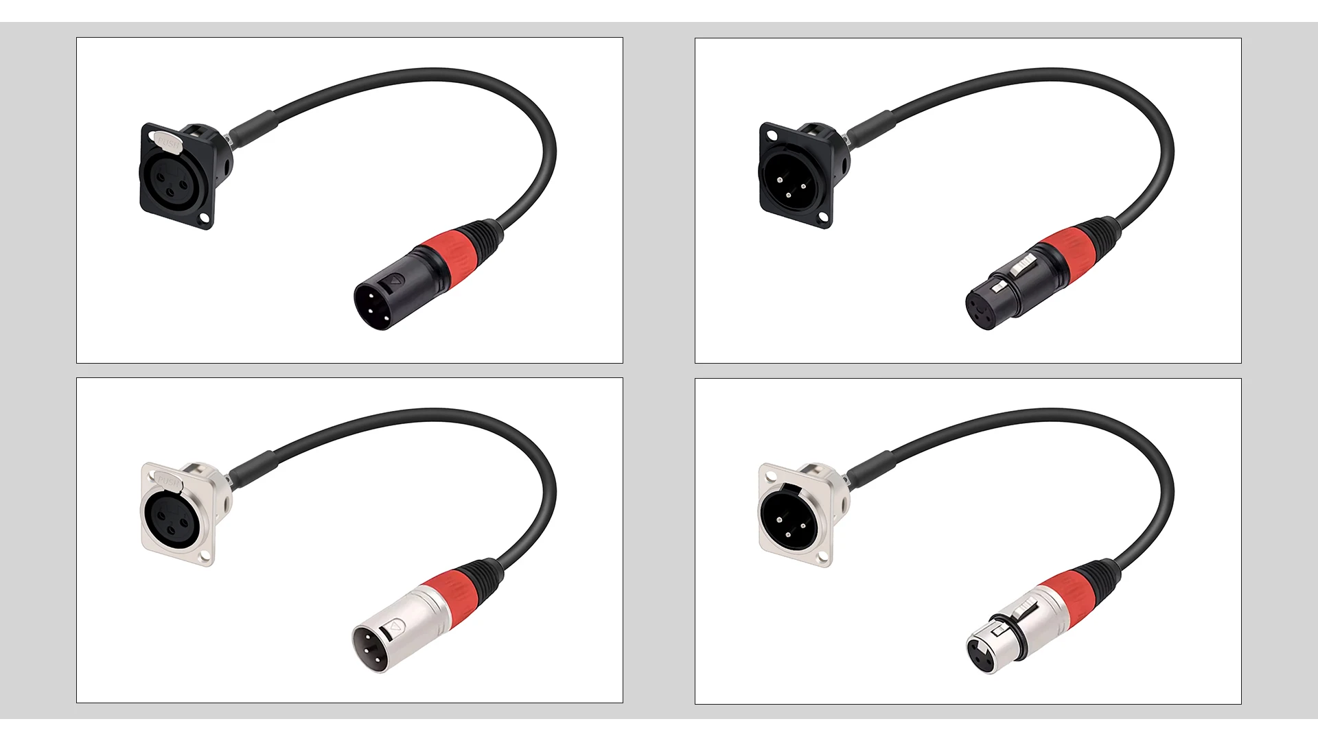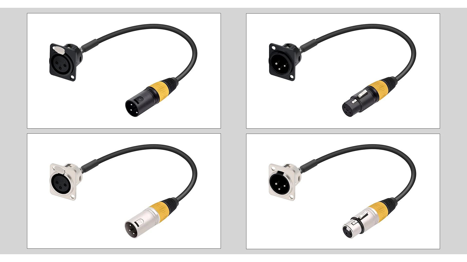 The D series xlr pass through pannel mount male to XLR female cable with one end attached to the standard XLR microphone plug and the other end attached to the audio device surface, frame or wall panel, is suitable for audio device panel/frame repair, replacement and installation.