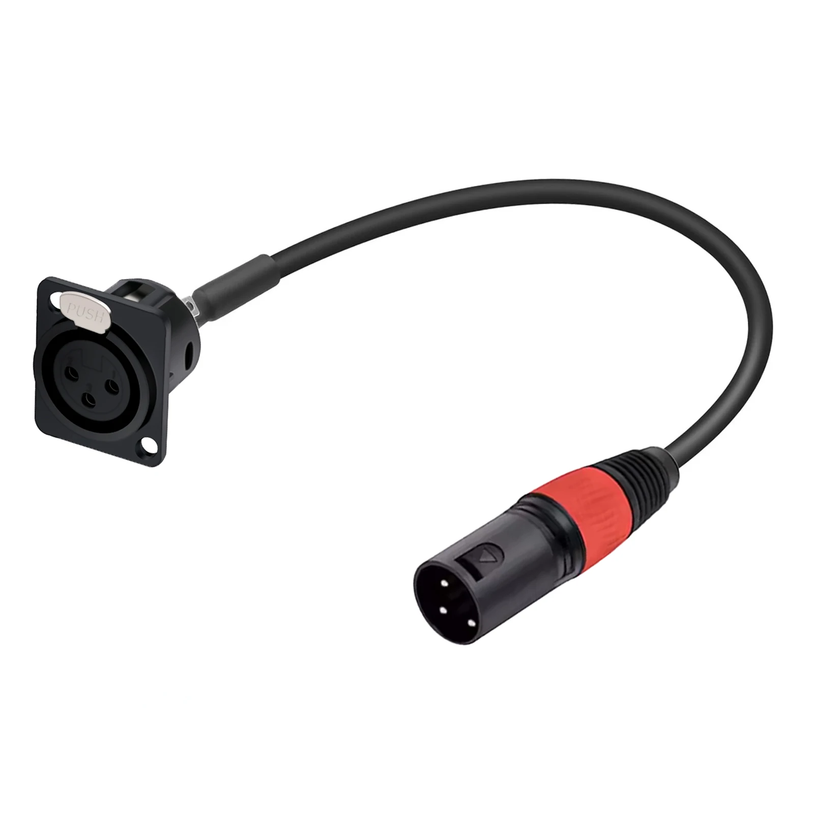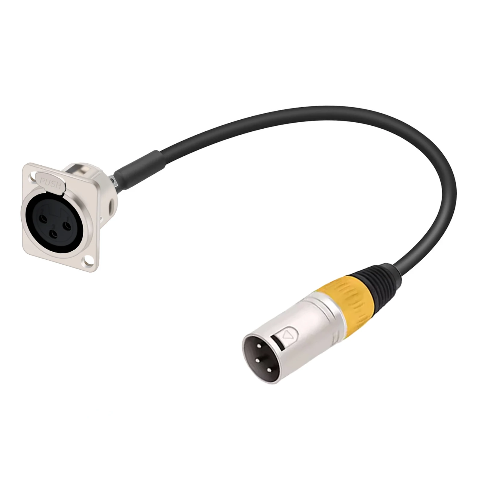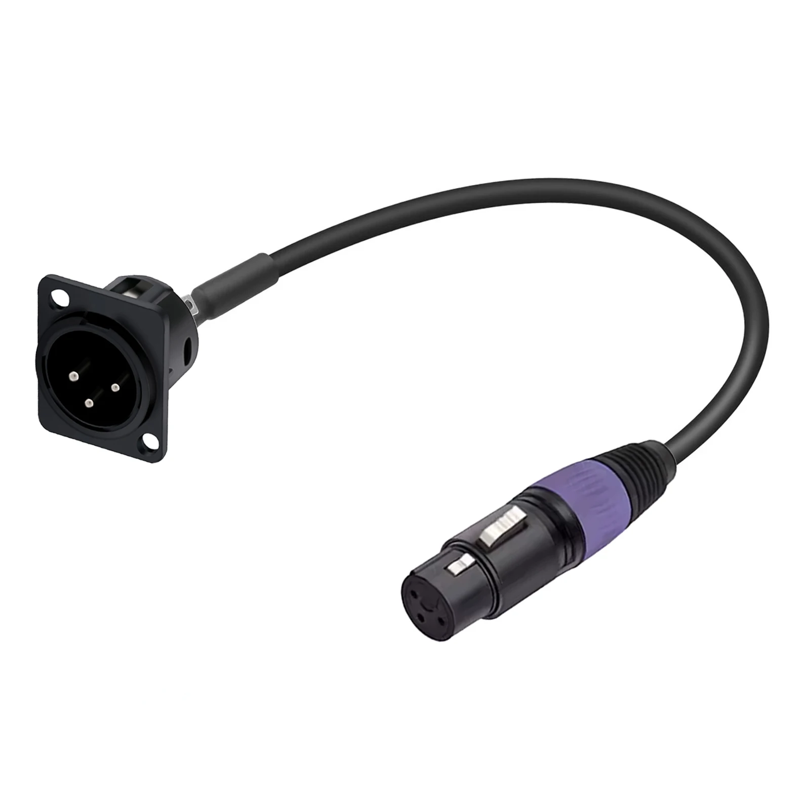 The D series xlr pass through pannel mount male to XLR female cable with one end attached to the standard XLR microphone plug and the other end attached to the audio device surface, frame or wall panel, is suitable for audio device panel/frame repair, replacement and installation.