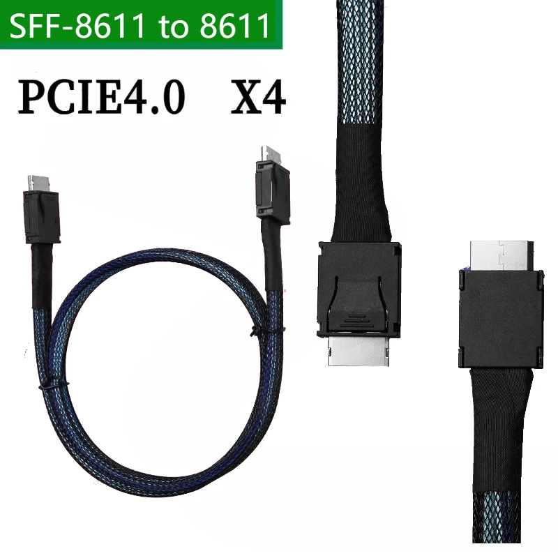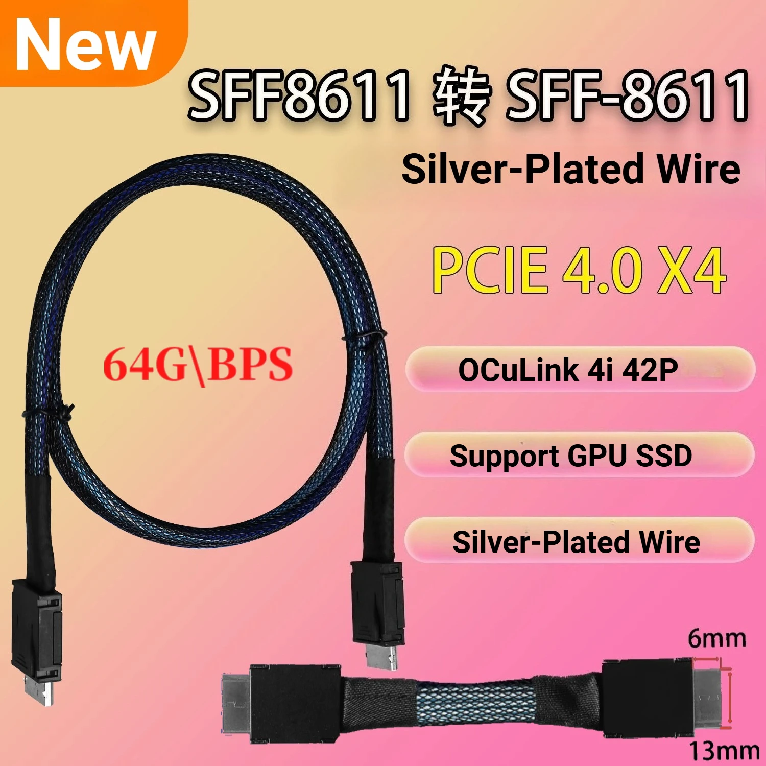 PCIE4.0x4 SFF8611 a SFF-8611 Cable de extensión para Ouclink 4i Cable plateado 28AWG