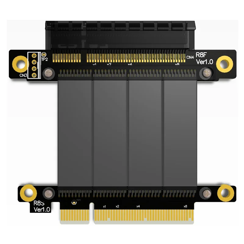 Velocidad máxima: PCIe Gen3.0 64 Gbps.Conector A: gen 3.0 PCIe x8 MachoConector B: gen3.0 PCIe x8 hembra5cm 10cm 15cm 20cm 25cm 30cm 40cm 50cm 60cmPCIe Gen3.0 64 Gbps máx.Blindaje EMI con polímero conductor