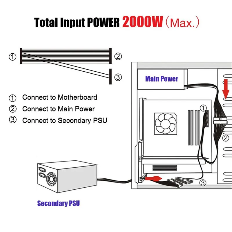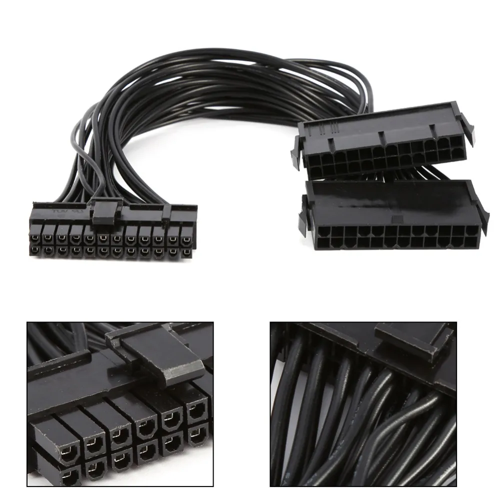 Cable de placa base para minería ATX 30cm 24 pines 20 + 4 pines Dual PSU fuente de alimentación divisor conector de Cable de extensión