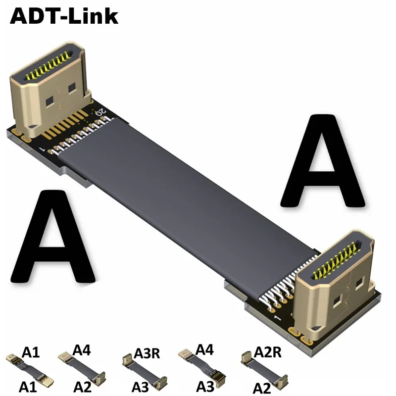 Comprar Cable plano A-A blindado aéreo compatible con HDMI, Cable FFC FPV HDMI 2,0, Cable de codo Axial plegable estándar macho a hembra
