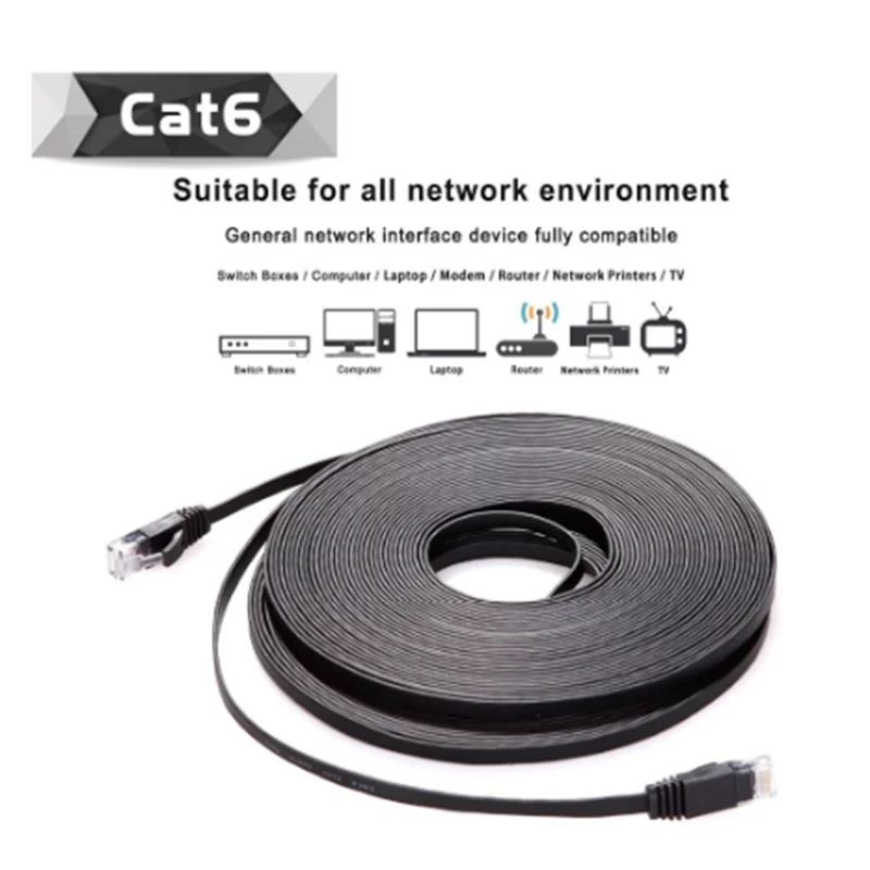 Comprar Cable plano CAT6 UTP Ethernet RJ45 jumper LAN router, cable de ordenador de la mejor calidad, 1m, 2m, 3m, 5m, 10m, 15m, 20m, 30m
