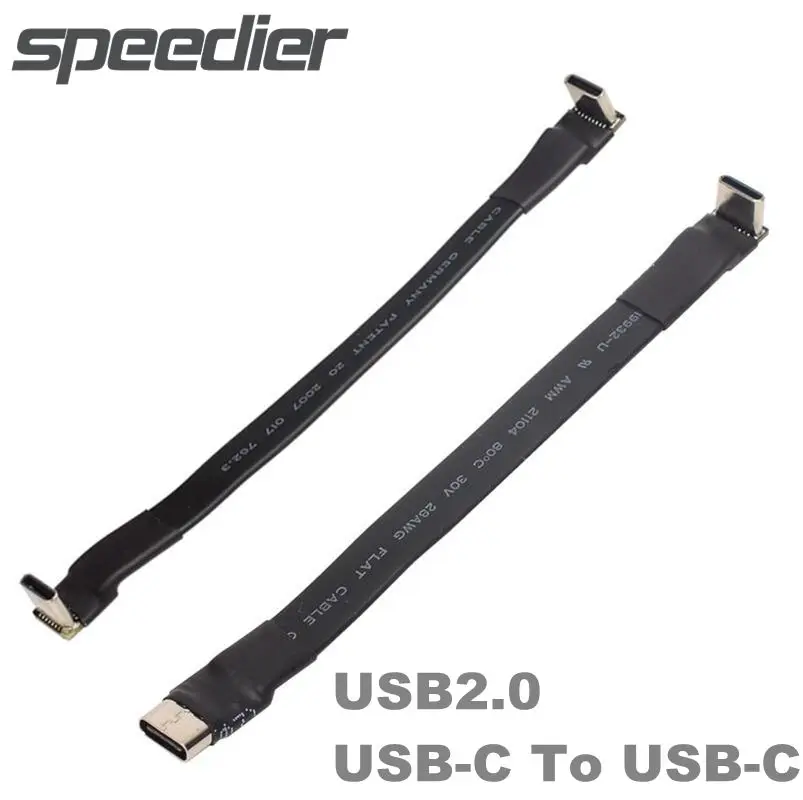 Comprar Cable plano de cinta USB 2,0 tipo C, extensión blindada FPC, USB 2,0, USB-C, extensor de ángulo arriba/abajo de 90 grados, 5CM-3M para TV y PC