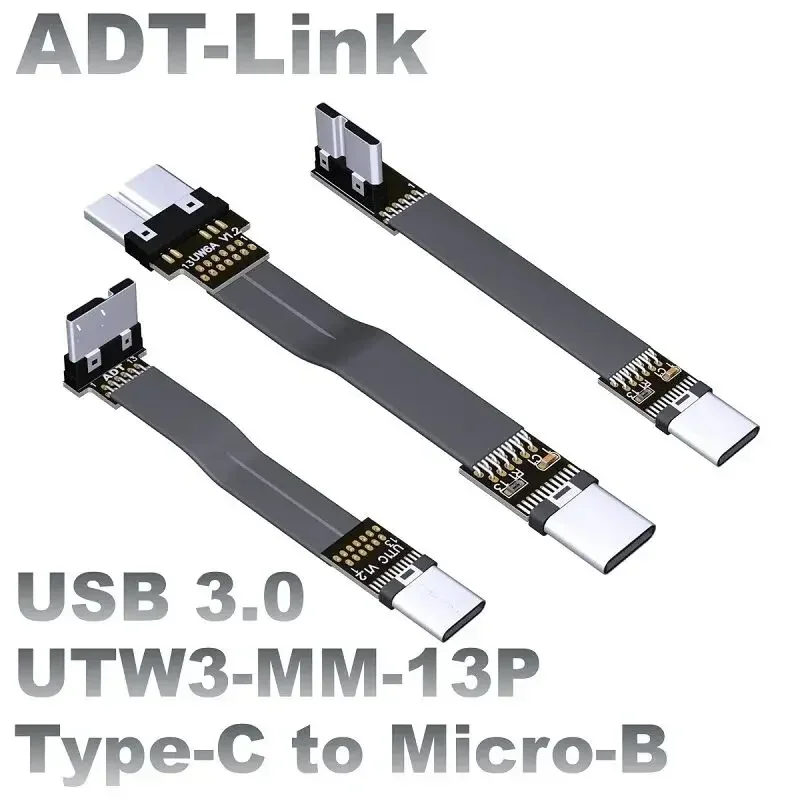 Comprar Cable plano de cinta USB 3,0 USB-C a Micro-B de 3-300CM macho a macho FPC USB 3,0 tipo C Micro B conector de ángulo de 90 grados arriba abajo