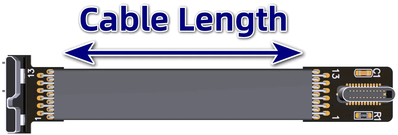 La longitud del cable se refiere a la parte del cable visible.No incluye la PCB ni el conector.Para conocer la longitud del cable, consulte la flecha azul de 5 cm en la siguiente figura.