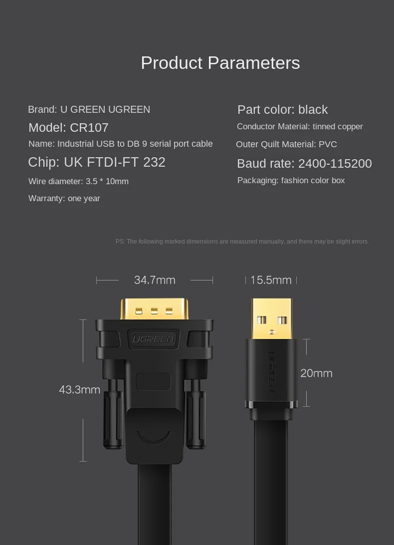 Comprar Cable plano convertidor USB a RS232 Com Serial DB9 para Win10 WIN8 MAC SERVER2008 INDUSTRY FTDI FT232