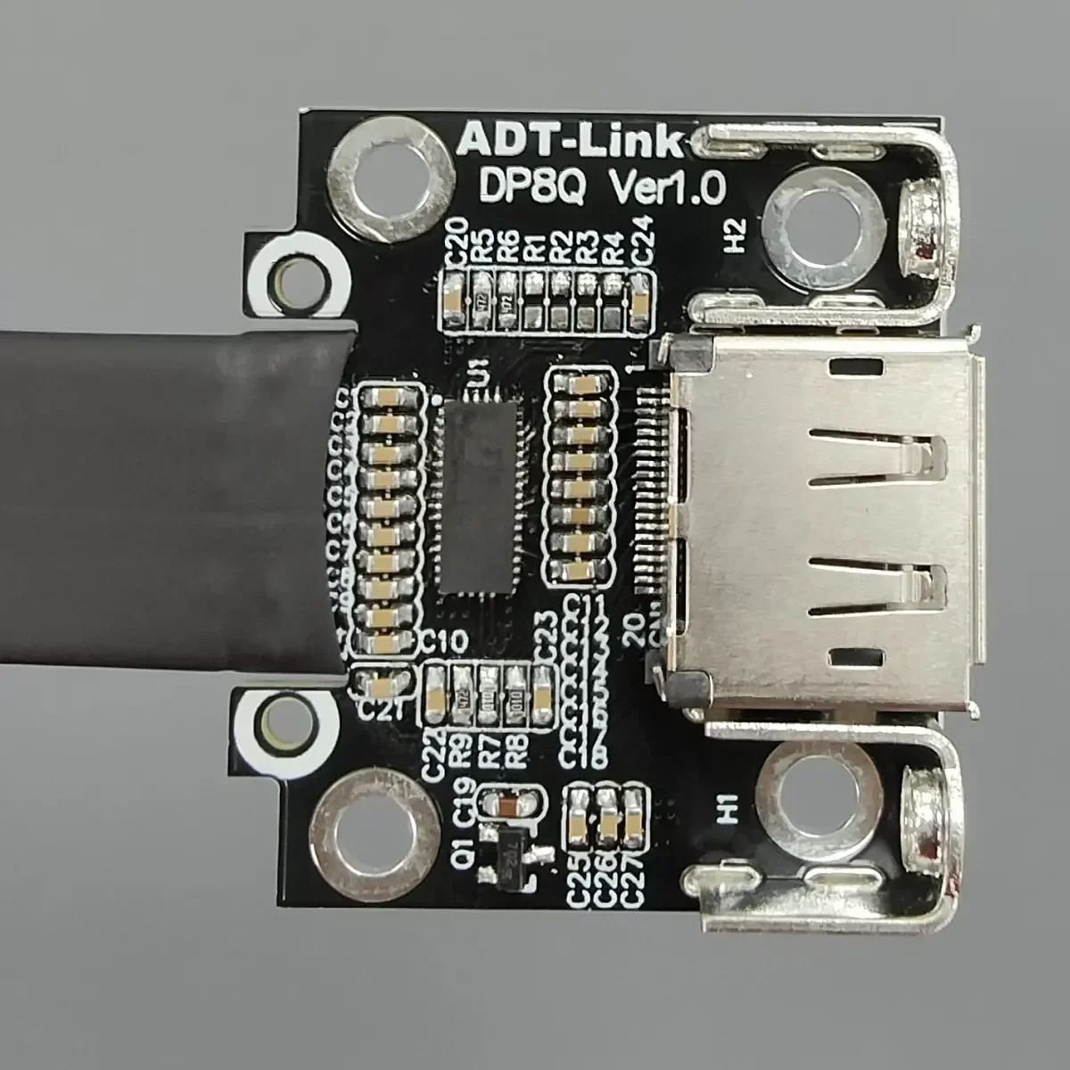 El DP8Q tiene un chip de relé, y la tecnología de chip activo permite la mejora de la señal para admitir la velocidad completa DP1.4Nota 2:El cable de extensión no admite 2 transferencias, es decir, la señal se atenuará si dos o más líneas DP están conectadas en serie. El chip sin relé no puede admitir Velocidad máxima DP1.4, y debe reducirse en velocidad y frecuencia para ser utilizado normalmente.