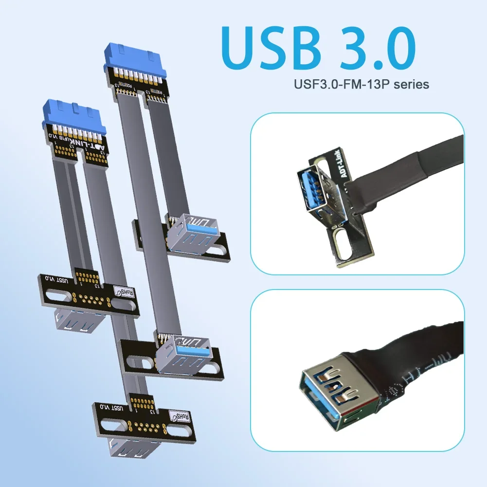 Comprar Cable plano de extensión de Panel frontal USB 3,0 de 2 puertos, conector hembra tipo A, conector adaptador de ranuras hembra de cabezal de 19/20 Pines, 19P/20P