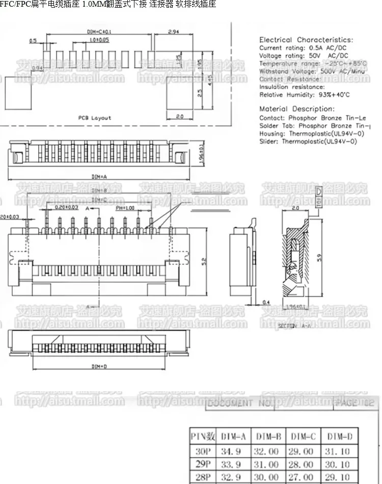 Cable plano flexible de 10 piezas, conector FFC/FPC de 1,0 MM, conexión inferior tipo solapa, 4/6/8/10/14P/20P-30P