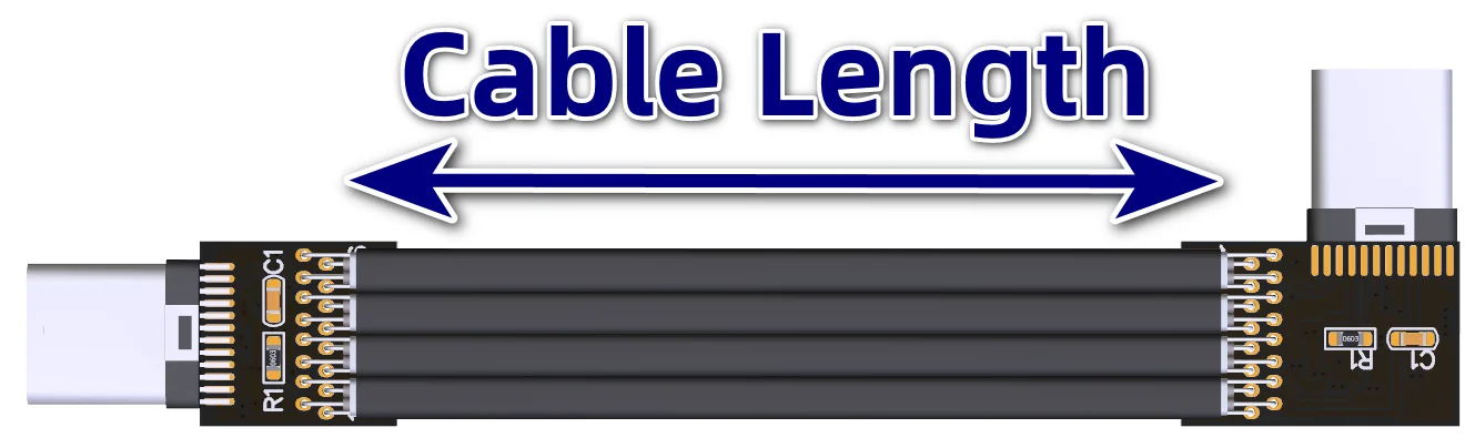 La longitud del cable se refiere a la parte del cable visible.No incluye la PCB ni el conector.Para conocer la longitud del cable, consulte la flecha azul de 5 cm en la siguiente figura.