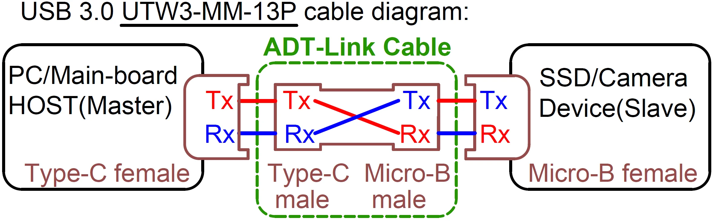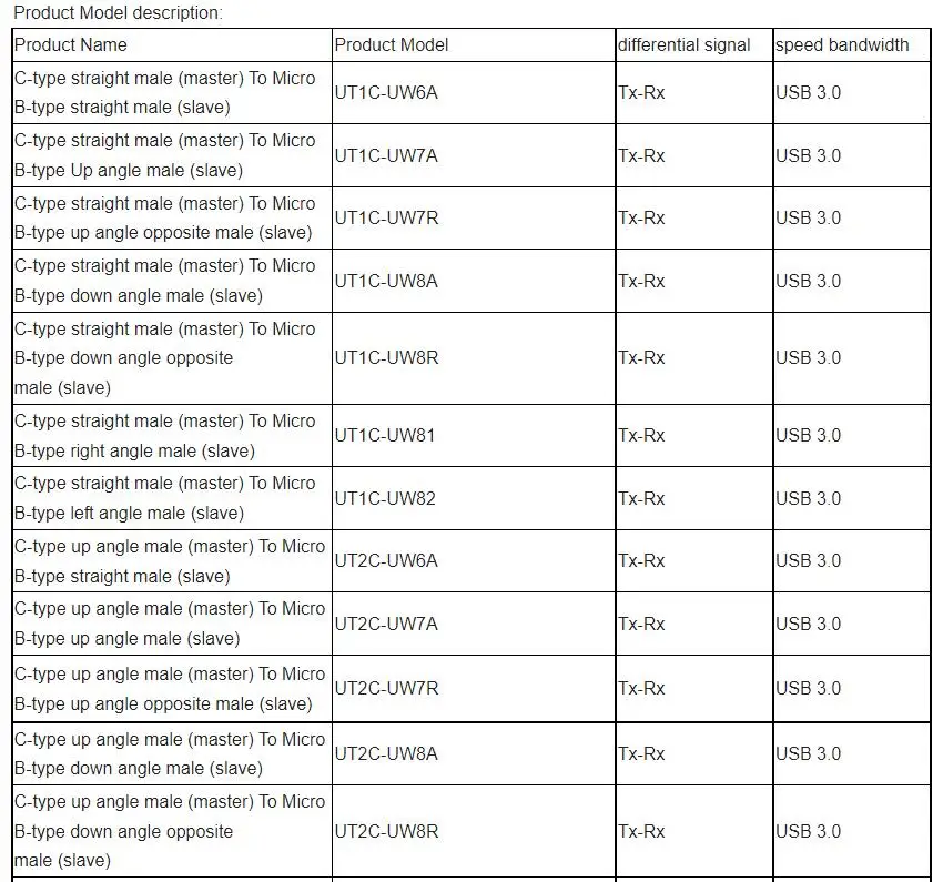 Modelo de producto: serie UTW3-MM/MF-13P (No admite la función OTG del host micro-USB)