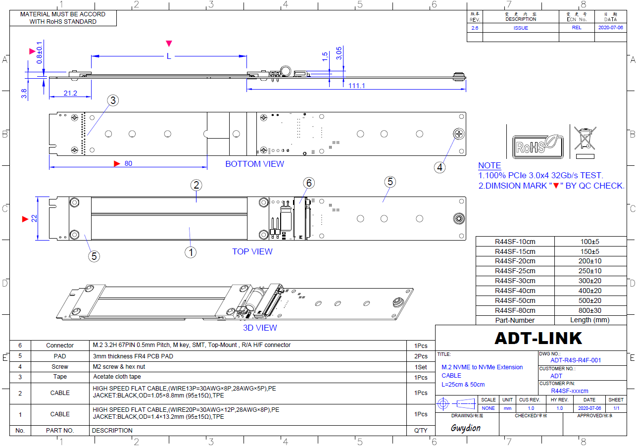 2.Line length advantage, from 3 cm to 1 m can be customized, the shop sales of the transfer wiring, wire impedance is low, less than 60 cm line length can be stable support PCIe3.0 full speed.
