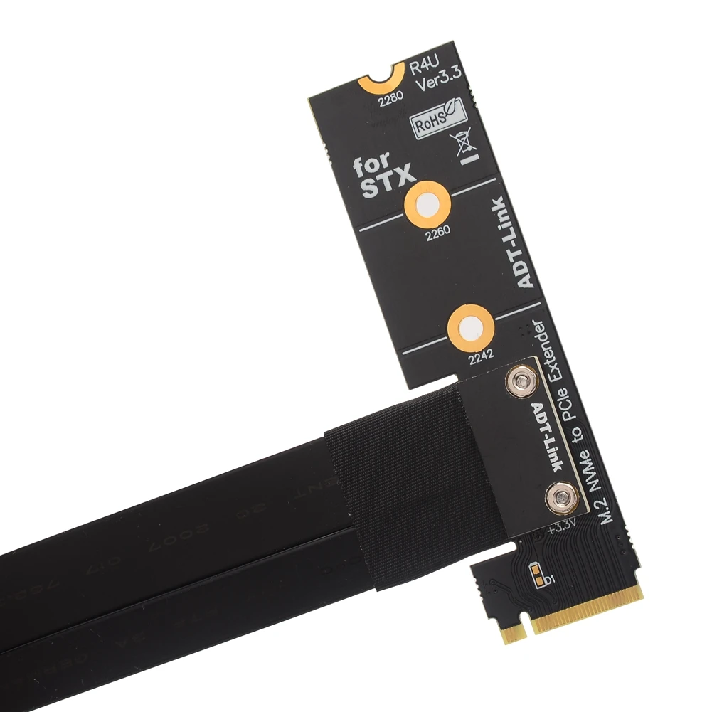 Comprar Cable plano M.2 NVME SSD, Cable de extensión de unidad de estado sólido, giro 90 en ángulo izquierdo y derecho, llave M2 M 2280, adaptador extensor STX de tarjeta elevadora