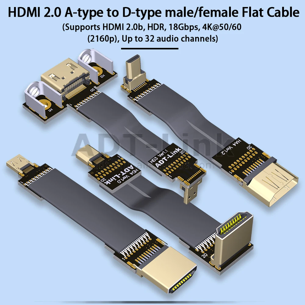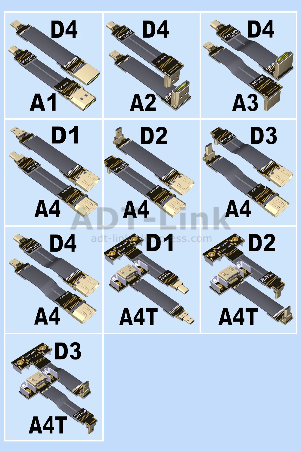 Comprar Cable plano macho y hembra para fotografía aérea, cinta de 90 ángulos para cámara Gopro, tipo A-D, 4K, HDR, ADT HD a Micro HD V2.0, arriba y abajo