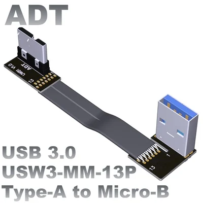 Comprar Cable plano OTG USB3.0, adaptador micro-b plegable de 90 grados, conector micro-usb tipo A, extensión de datos, FPC, FPV, USB 3,0, novedad