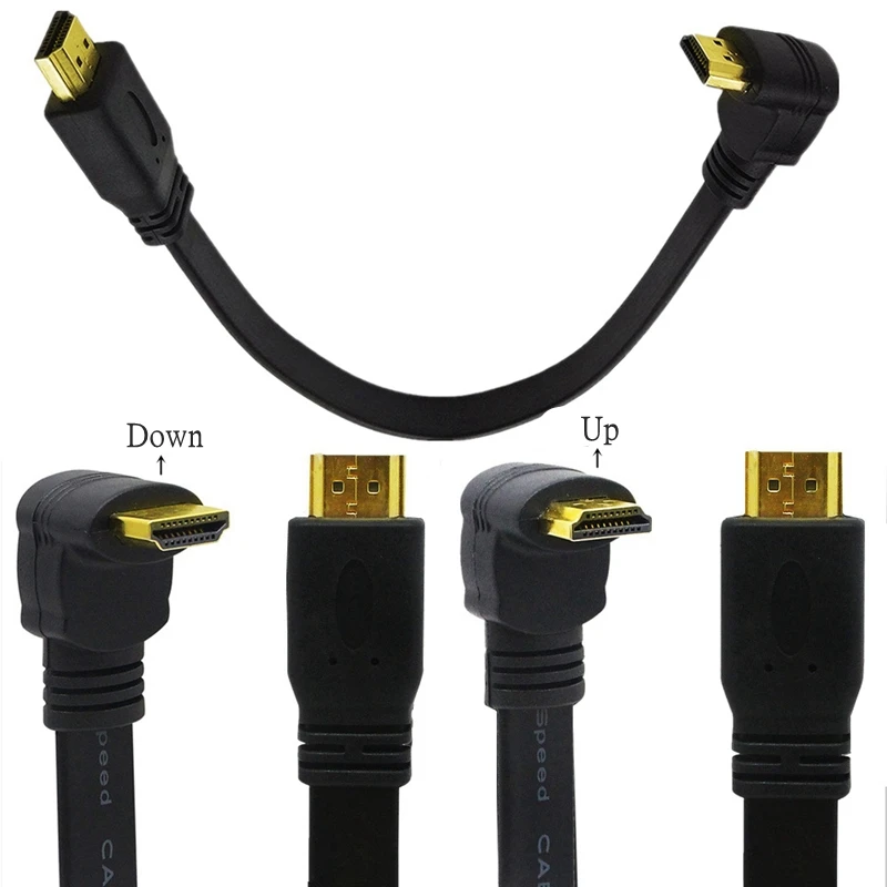 Comprar Cable plano y delgado de alta velocidad, 1,4 V, compatible con HDMI, 4K, 30cm, tipo A, macho a macho, AM/AM, en ángulo arriba y abajo