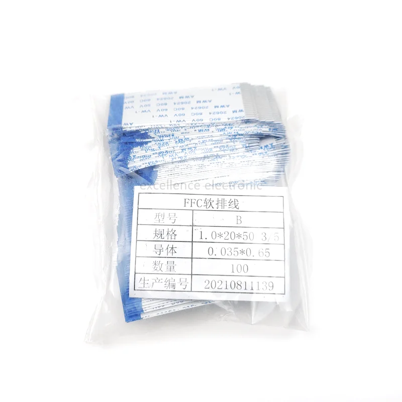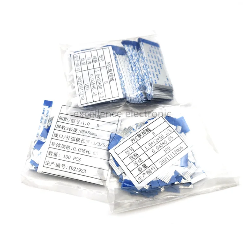 Comprar Cable plano y Flexible, cinta FPC/FFC, paso de 1mm, reversa, tipo B, longitud de 5CM, 4P/6/8/10/12/20/24/30 Pines, 100 piezas