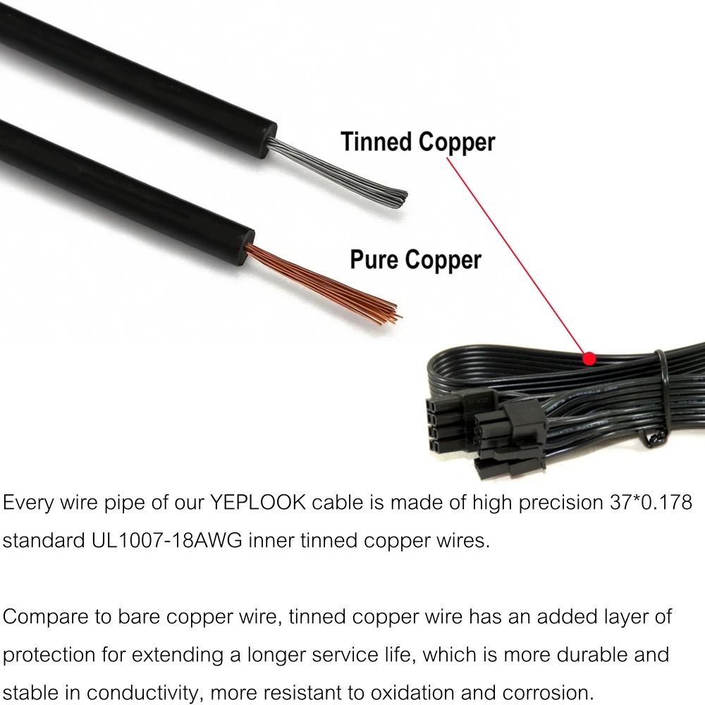 3.Cable de alimentación GPU YEPLOOK PCI-e de 6+2 pines compatible con tarjeta de video GPU que tiene una toma de corriente de 8 pines, 6 pines o 8 pines + 6 pines.Admite potencia como máximo 800 W para GTX1080, GTX1080Ti, RTX2060, RTX2070, RTX2080, RTX2080Ti, RTX3060, RTX3070, RTX3080 Ti, RTX3090 Ti, RTX4060.RTX4080, RTX4090, RX570, RX580, RX590, RX5700 XT, RX6700 XT, RX6800 XT, RX6900 XT, etc.