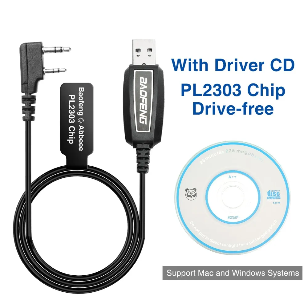 Comprar Cable de programación USB con CD para Baofeng UV-5R 82 888S UV-S9PLUS UV-13 16 17 21 Pro Quansheng UV-K5 5R Plus Walkie Talkie Radio