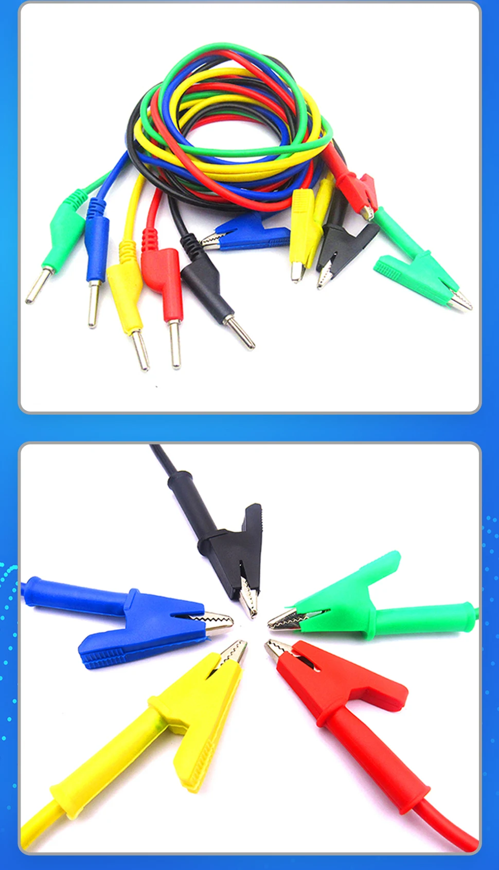 Cable de prueba de doble extremo de 1M, línea de voltaje eléctrico, 4mm, conector Banana, pinza de cocodrilo, multímetro 15A, cables de prueba DIY