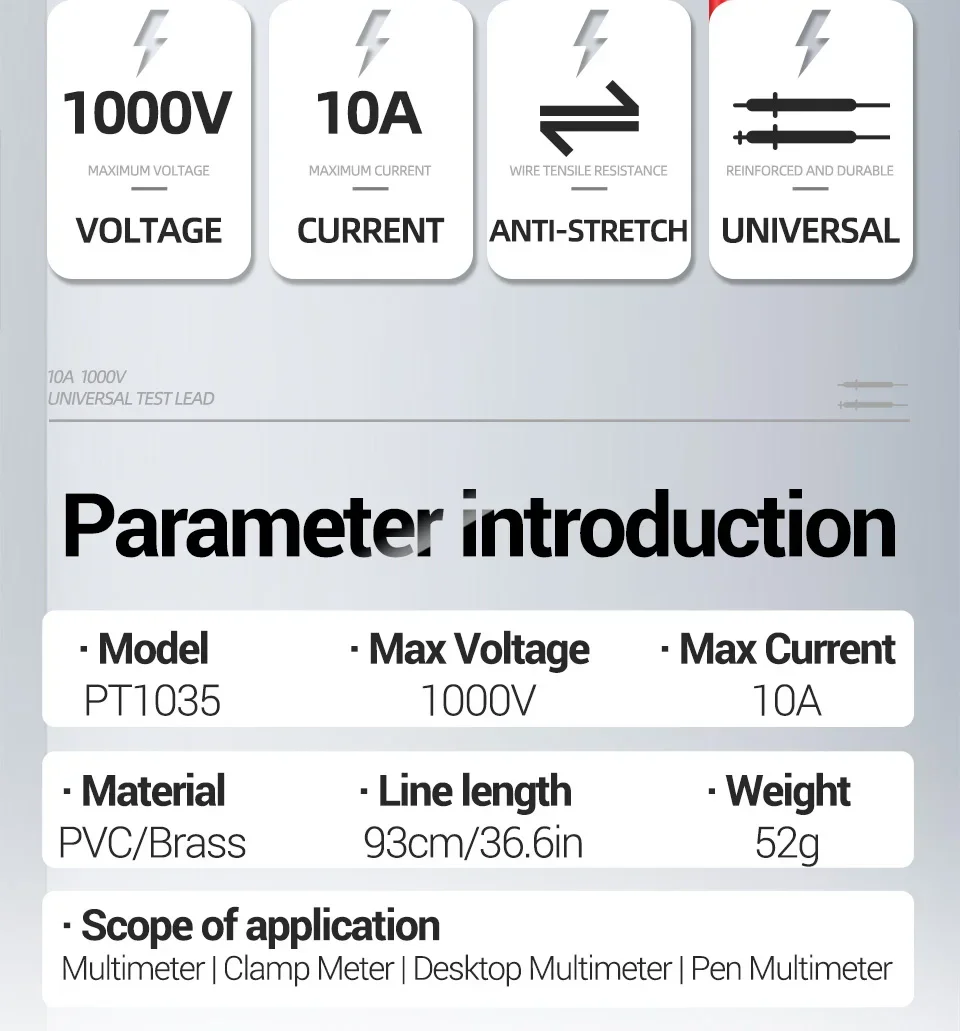 NENGPT1035 10A 1000V multímetro Digital Cable de prueba multímetro reemplazable pluma sonda prueba cable voltímetro amperímetro accesorio